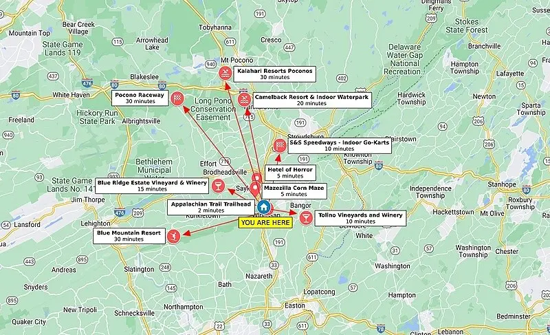 • 20 minutes to Camelback Mountain Resort (ski & waterparks)